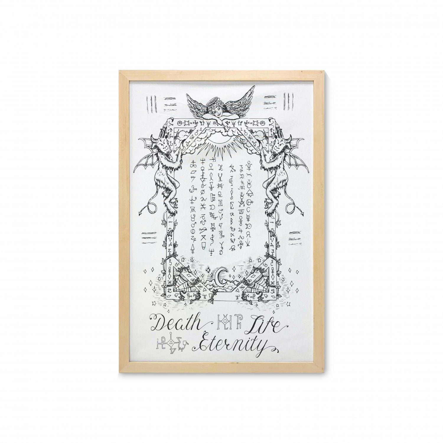 Occult Wall Art With Frame Gothic Medieval Magic And Spell Eternal Life Chart Themed Art Printed Fabric Poster For Bathroom Living Room 23 X 35 White Black By Ambesonne Walmart Com